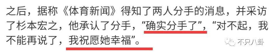 目前杉本宏之已对媒体承认分手,并不愿再过多谈论此事," 对不起,我不能再说了,祝她幸福吧!"