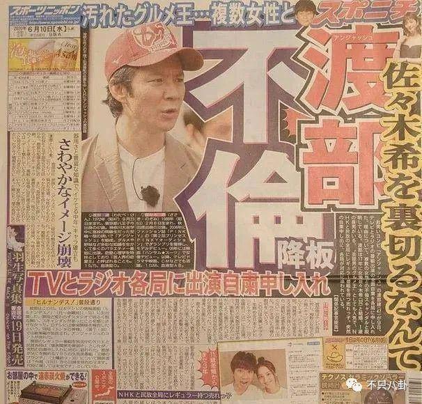 舆论对男明星则友好很多,佐佐木希的老公渡部建,出轨从 20 岁到 50 岁不同年龄段的女性,一直在出轨的路上策马狂奔。