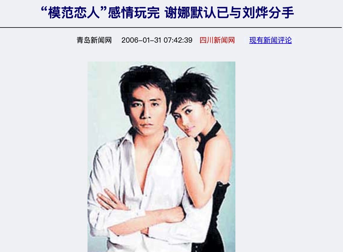 2006年年初,有媒体刊登了谢娜默认与刘烨分手的消息。
