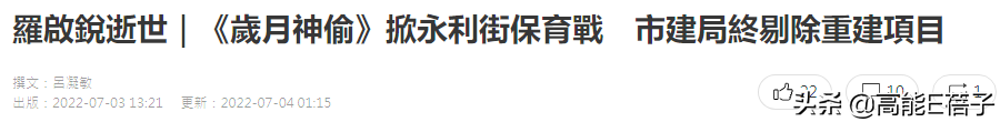施玉麒爆出消息时,用的是罗启锐《岁月神偷》时的照片。《岁月神偷》也是罗启锐的经典代表作之一,这个作品还改写了永利街重建的结局。