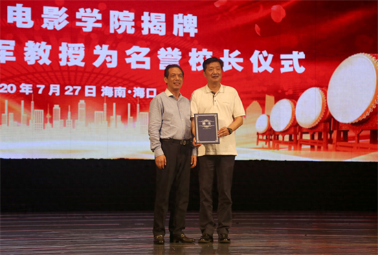 7月27日上午,海口经济学院南海电影学院揭牌暨聘请张会军教授为名誉校长仪式,在学校大剧院举行。省教育厅副厅长黎岳南、海经院董事长曹成杰、全体校领导及教职工出席。学校执行校长彭京宜主持仪式。