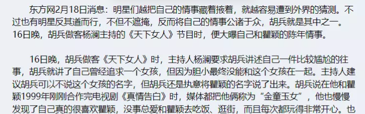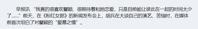 其实胡兵很想回答是的,可事实他们并没有谈恋爱。