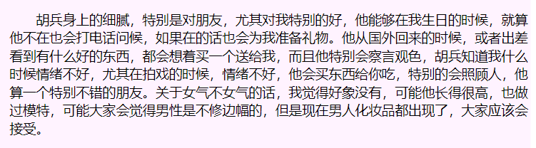 而且瞿颖也始终没有察觉到胡兵的小心思,而是非常大大咧咧的来了句:“我们是关系非常好的哥们。”