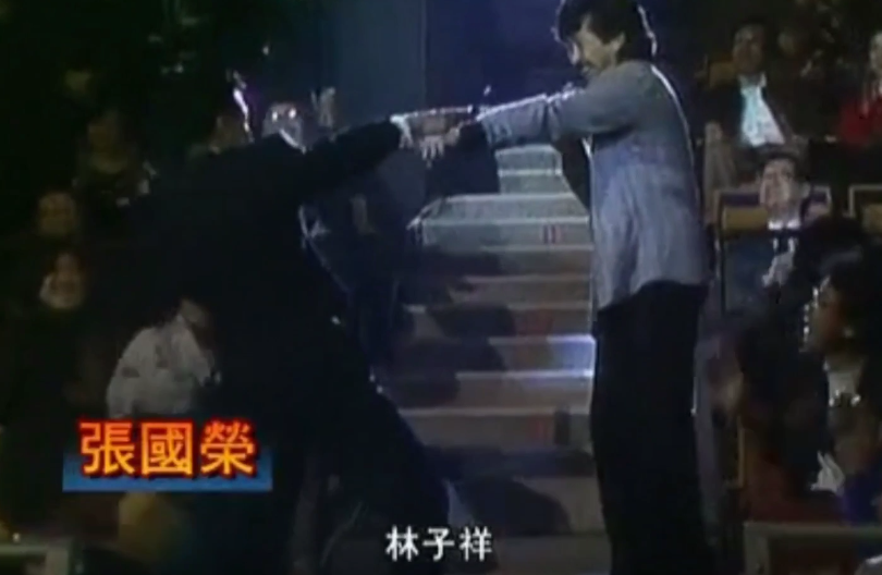 唱到兴起的时候,他还会走到原创歌手面前,示意他们起来飙歌,尽管他们才是歌曲的原唱,但在林子祥面前,却纷纷败下阵来,甚至张国荣都唱破了音,谭咏麟还落荒而逃。