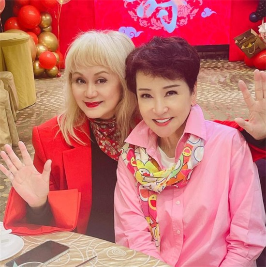 2023年林建明参加好友的生日宴会,与昔日好友狄波拉同框,照片中的她涂着大红唇染着金发,气色很好。