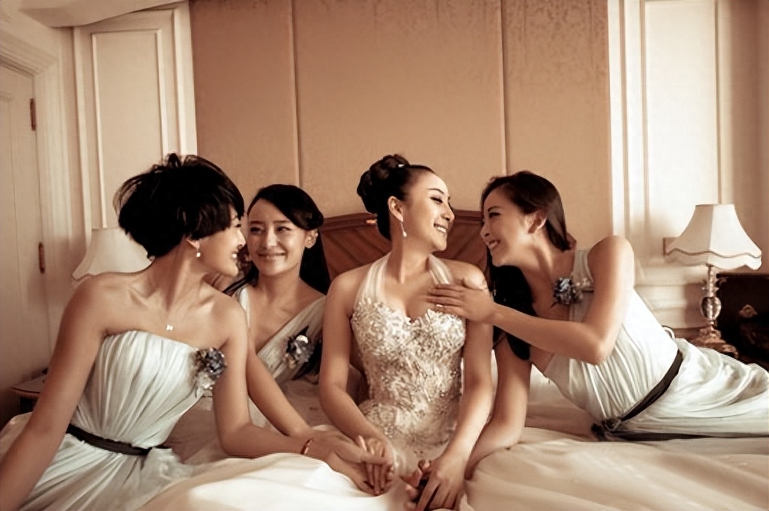 隋兰婚礼伴娘团(左起)兰爱华、端木崇慧、黄小蕾