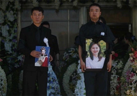 后来在王欢的葬礼上,她那刚经历了丧妻之痛的丈夫,强忍着巨大的悲痛,和她弟弟手捧遗像为她送行。