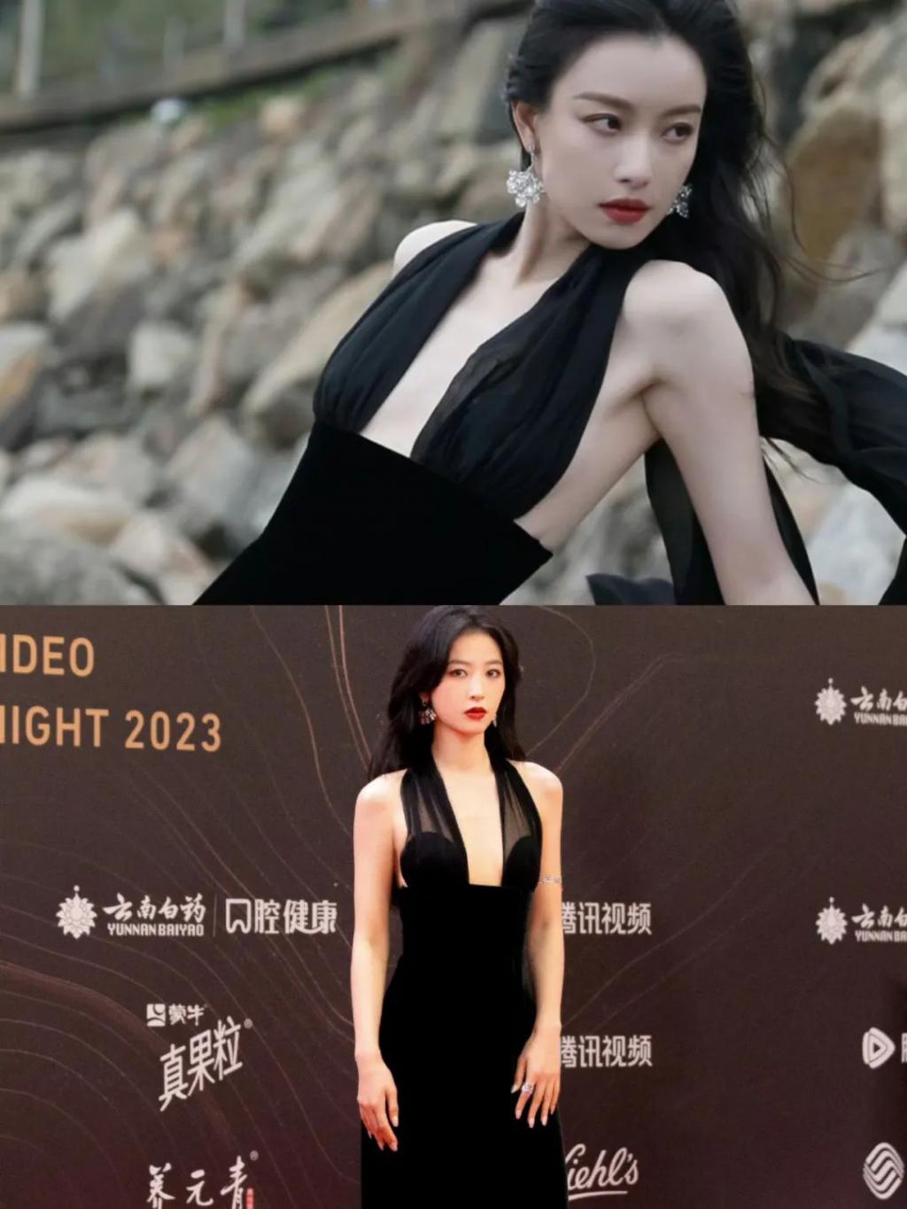 倪妮和周雨彤,不谋而合,竟然撞衫了。