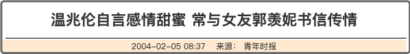2002年11月,因为一同主演无线新剧《牛郎织女》,比自己大11岁的温兆伦对郭羡妮发起了猛烈的爱情攻势。