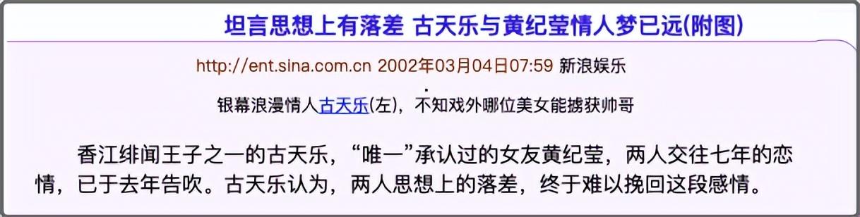 那时的古天乐身边已有一位相恋7年的女友黄纪莹,在与郭羡妮爆出绯闻后,两人感情告吹。