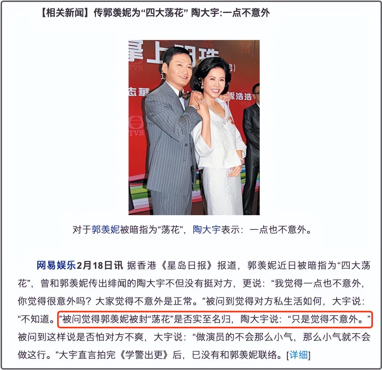 后来,港媒将郭羡妮选为“四大荡花”之一,询问陶大宇的看法。