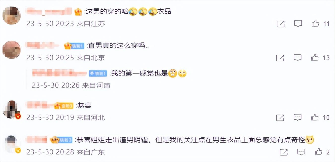 网友也因此质疑阚清子未婚夫的人品,直呼:“直男真的这么穿吗”,对其性取向甚是怀疑。
