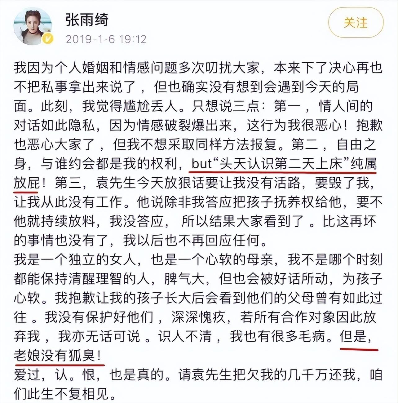 和近几年明星动不动发不痛不痒的声明和律师函相比,张雨绮这份声明倒显得真诚很多。