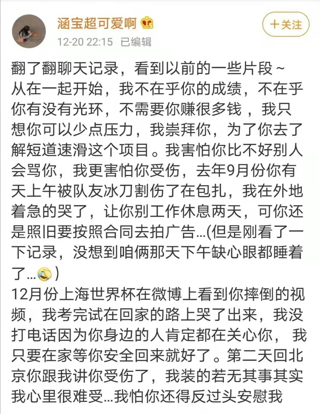 可以说她做到了一个女朋友所能做到的任何事情,而且她知道武大靖是一位运动员,所以她愿意为了他去牺牲很多。