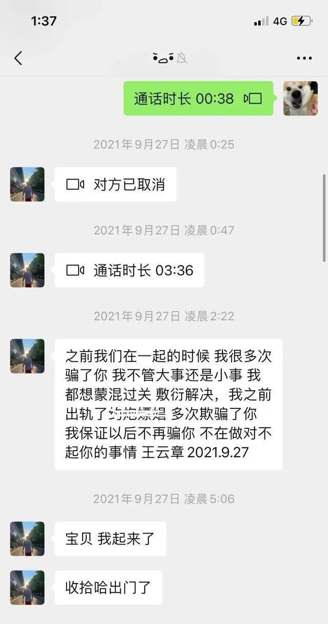 而在她曝光的聊天记录中,王云章也承认了自己此前曾经有过出轨、约炮、嫖娼。