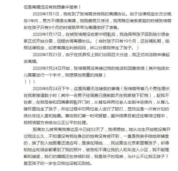 更让人想不到的是,此后张培萌还带着几个壮汉从漠寒家中抢走了女儿,这也是漠寒选择爆料这件事的初衷。
