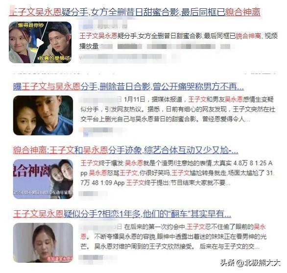 前段时间,王子文和吴永恩一起上了一档综艺节目,在节目中两人全程无交流,宛如陌生人一样,王子文更是删除了昔日甜蜜合影。