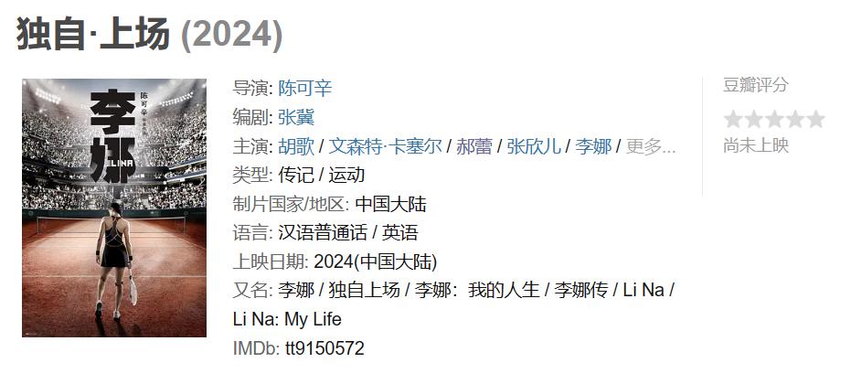 他的另一部女性题材电影《李娜》(现改名《独自 · 上场》),受到各种因素的影响,至今仍然没能上映。