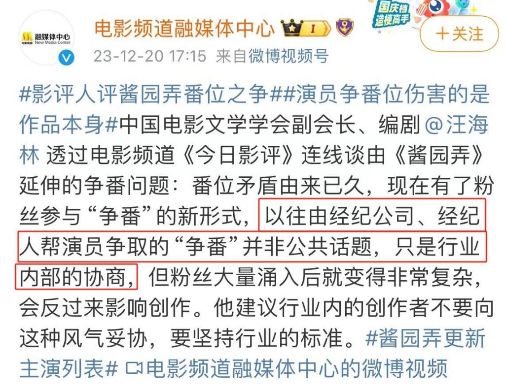 编剧汪海林也出面接受采访,称「争番」过去只是行业的内部协商。