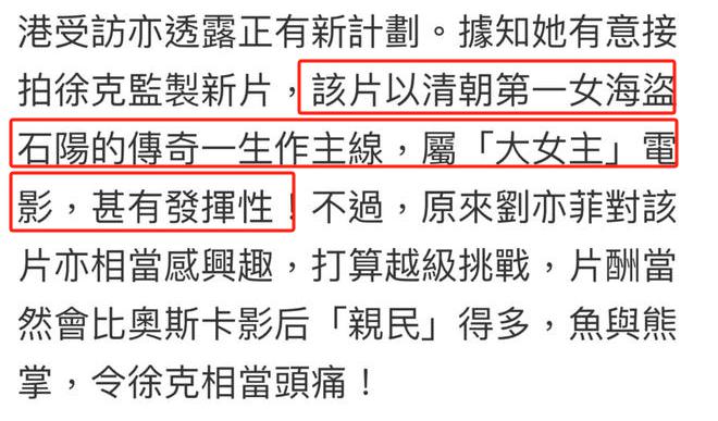 不久前,港媒曝出徐克监制的电影《海中女王石阳》正在筹备中。