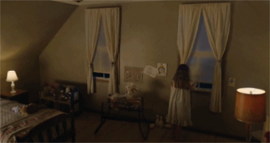 她拉开窗帘,奶奶温柔地劝诱着女孩打开窗户。