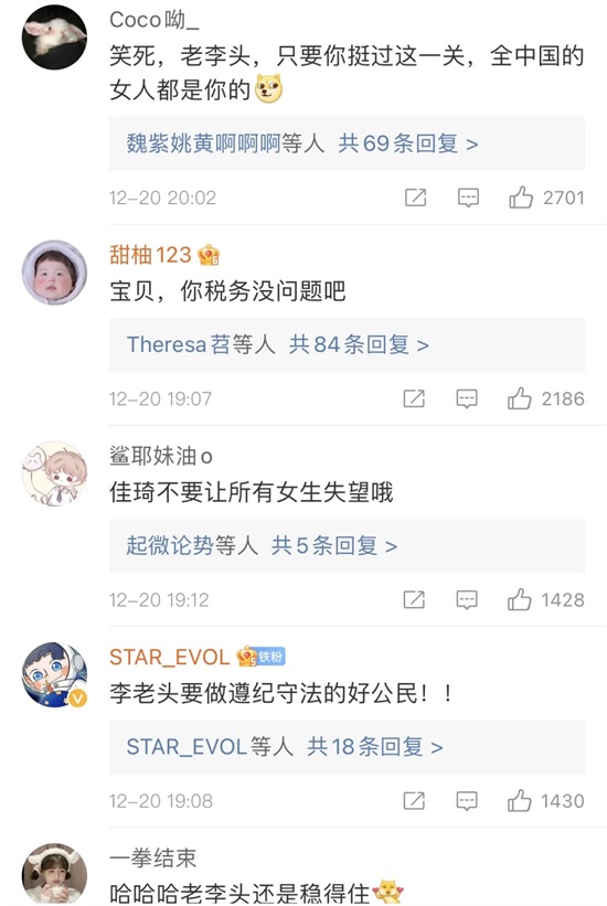 当李佳琦做了回应,粉丝们安了心。但他们还是在相关新闻评论区留言:“哥你可千万别干违法的事拜托!”“隔壁薇娅出事了,你千万要好好的,千万不能逃税漏税!”