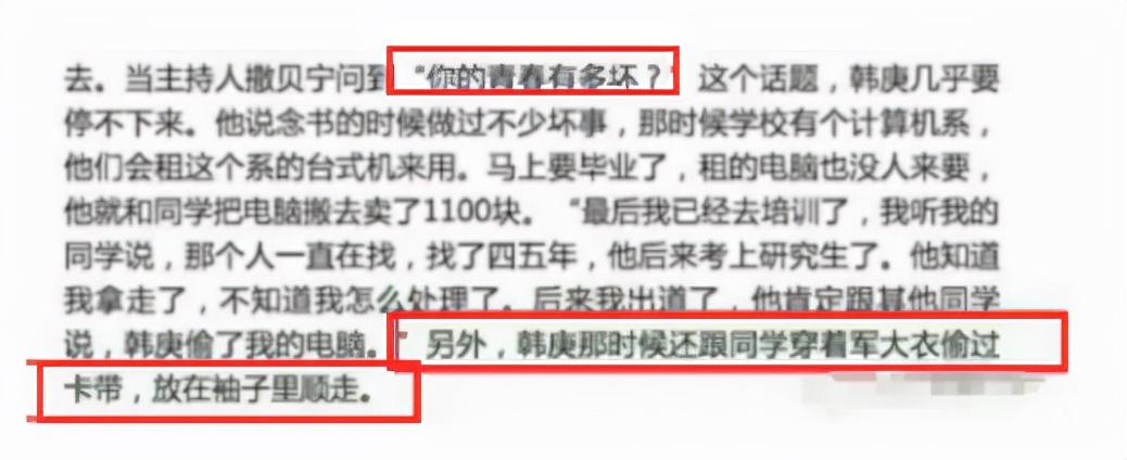 轮到韩庚的时候,他却说自己曾把同学的电脑偷去卖了,赚1100块,说到这的时候,还一副洋洋得意的样子~