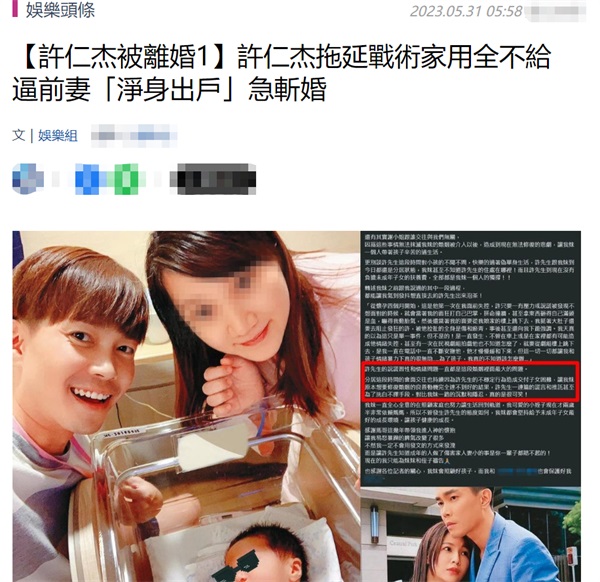 5月31日,据台媒报道,资深男星许仁杰宣布离婚,消息一出,立马引起了外界的热议。