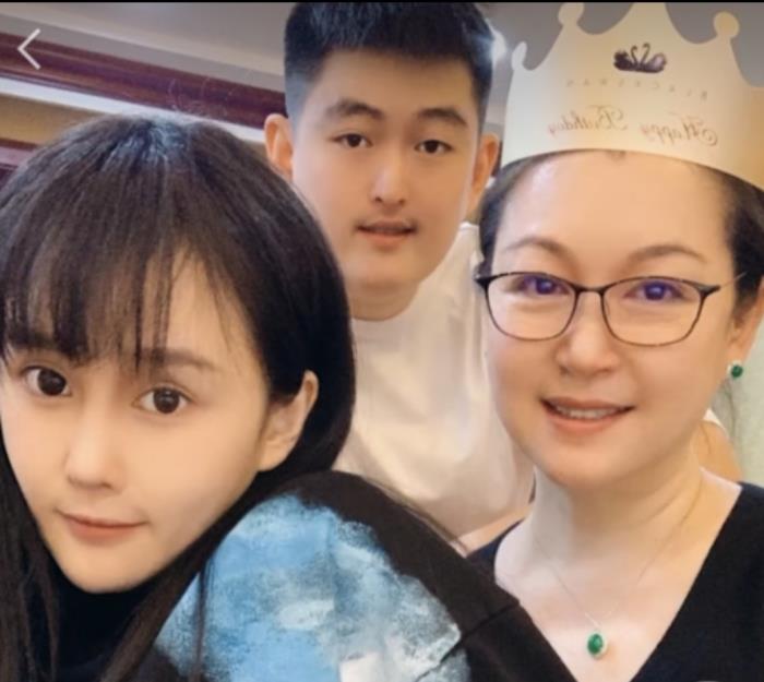 图中除了马丽娟和球球以外,还有球球的双胞胎弟弟,也是赵本山的小儿子赵一楠,母子三人亲密拍照关系很好,他穿着白色t恤一头寸头短发出镜,五官和爸爸赵本山越来越像,可以说他们一家四口都长得很像。
