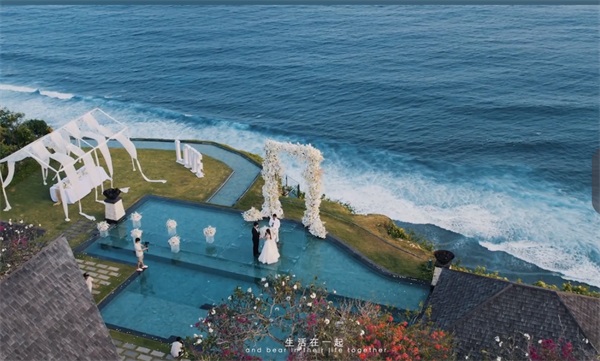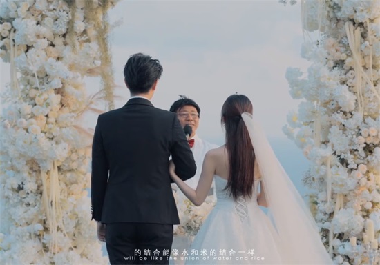 之后两人在牧师的见证下完成了订婚仪式,现场场景也随之曝光。对面就是一望无际的大海,周边的场景也十分唯美浪漫,画面完全不输窦骁何超莲的订婚现场。