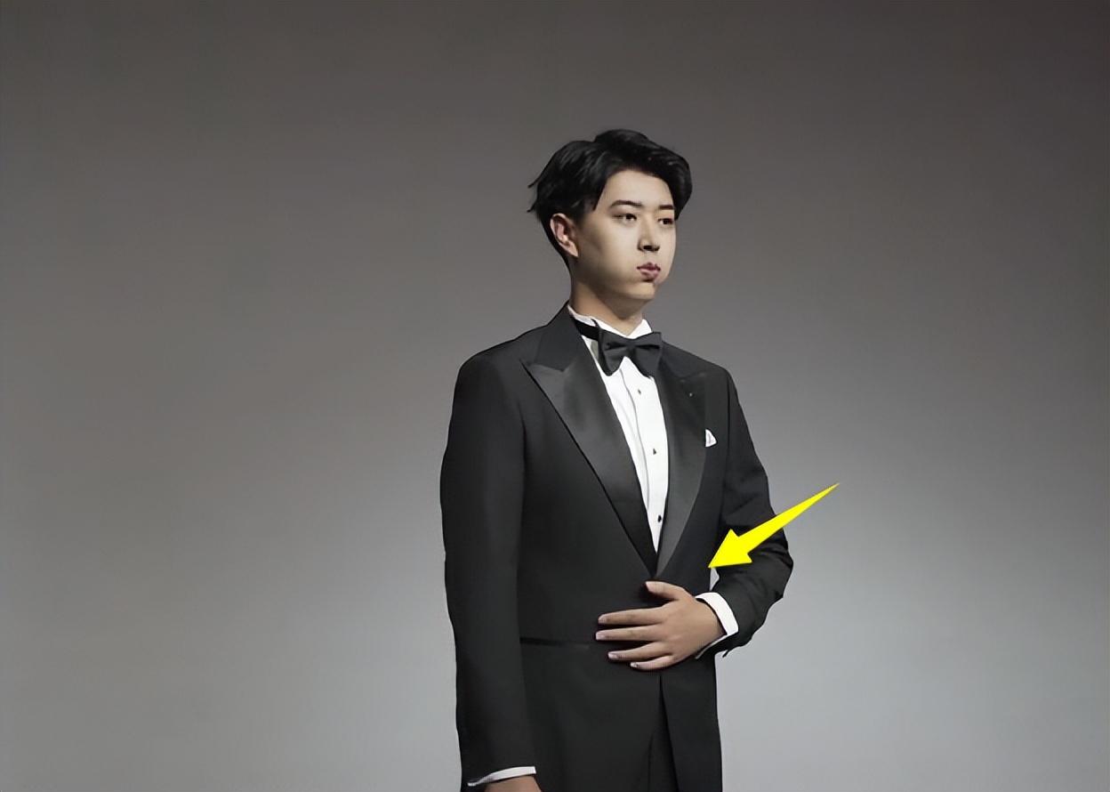 当天孔语浩西装笔挺从台上走来,现场布满了紫色的花朵,四处还放着两人的照片。孔语浩站在台上时还有点紧张,鼓着腮帮用手摸着肚子似乎在平息紧张的气氛。