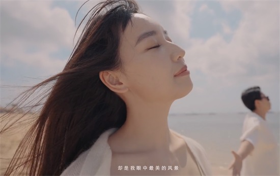 在海岛旅行自然不能离开大海,两人对着大海肆意感受着海风的侵袭,十分惬意。