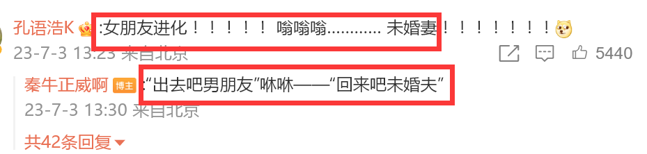 今年2月17日,秦牛正威孔语浩刚官宣恋情。距离官宣不到半年就高调订婚,发展可谓相当迅速。
