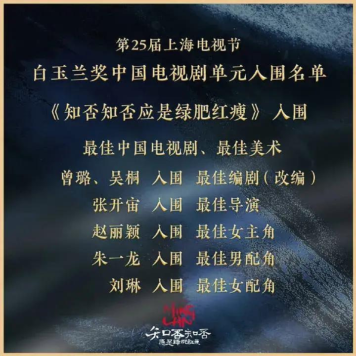 赵丽颖获得金鹰视后,最新作品《知否》提名白玉兰视后。