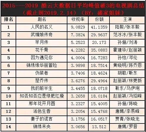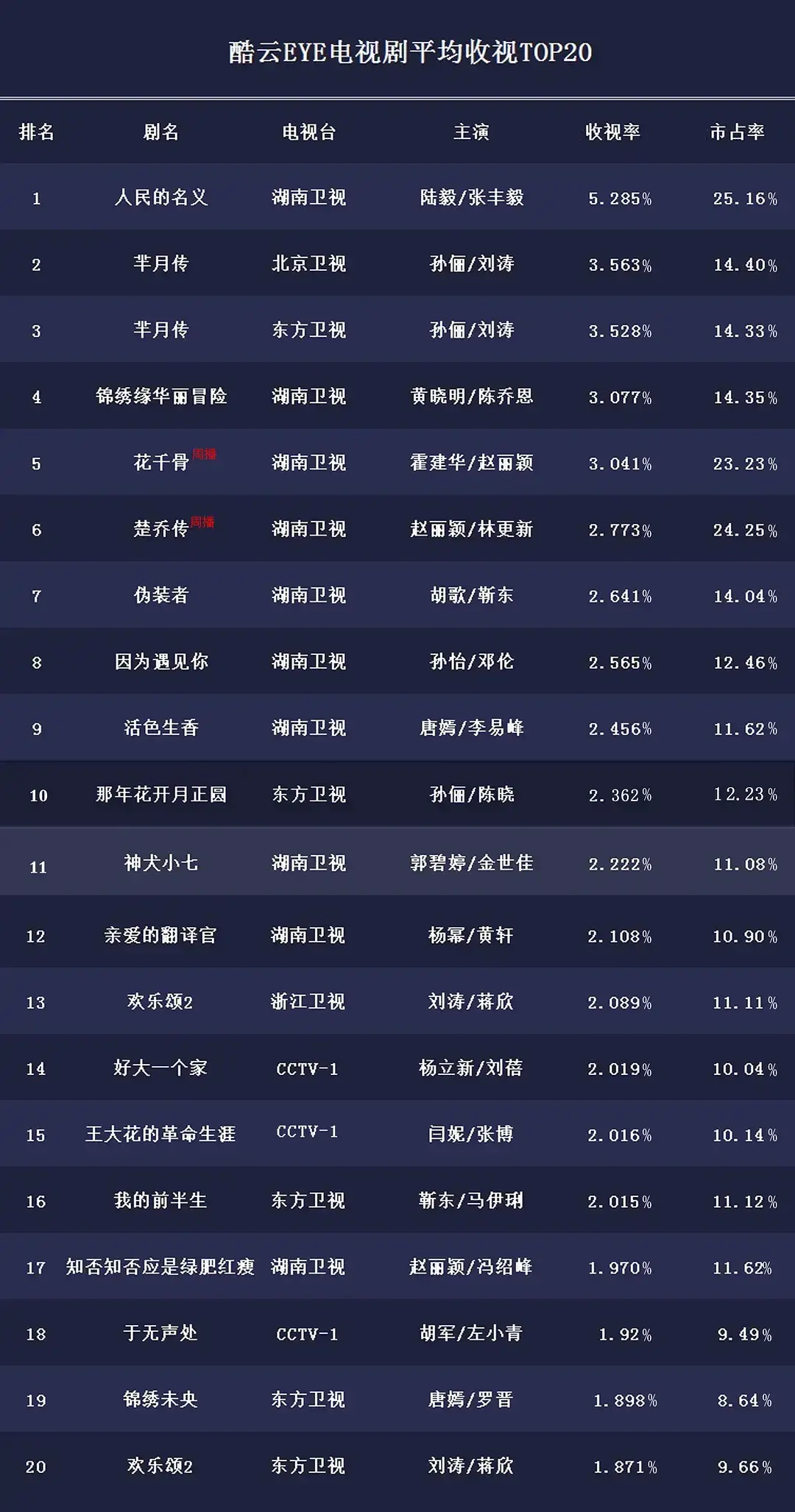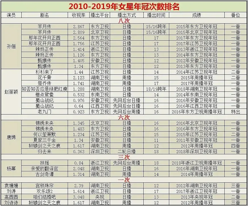 1:收视率年度前十:赵丽颖四部;杨幂才两部。