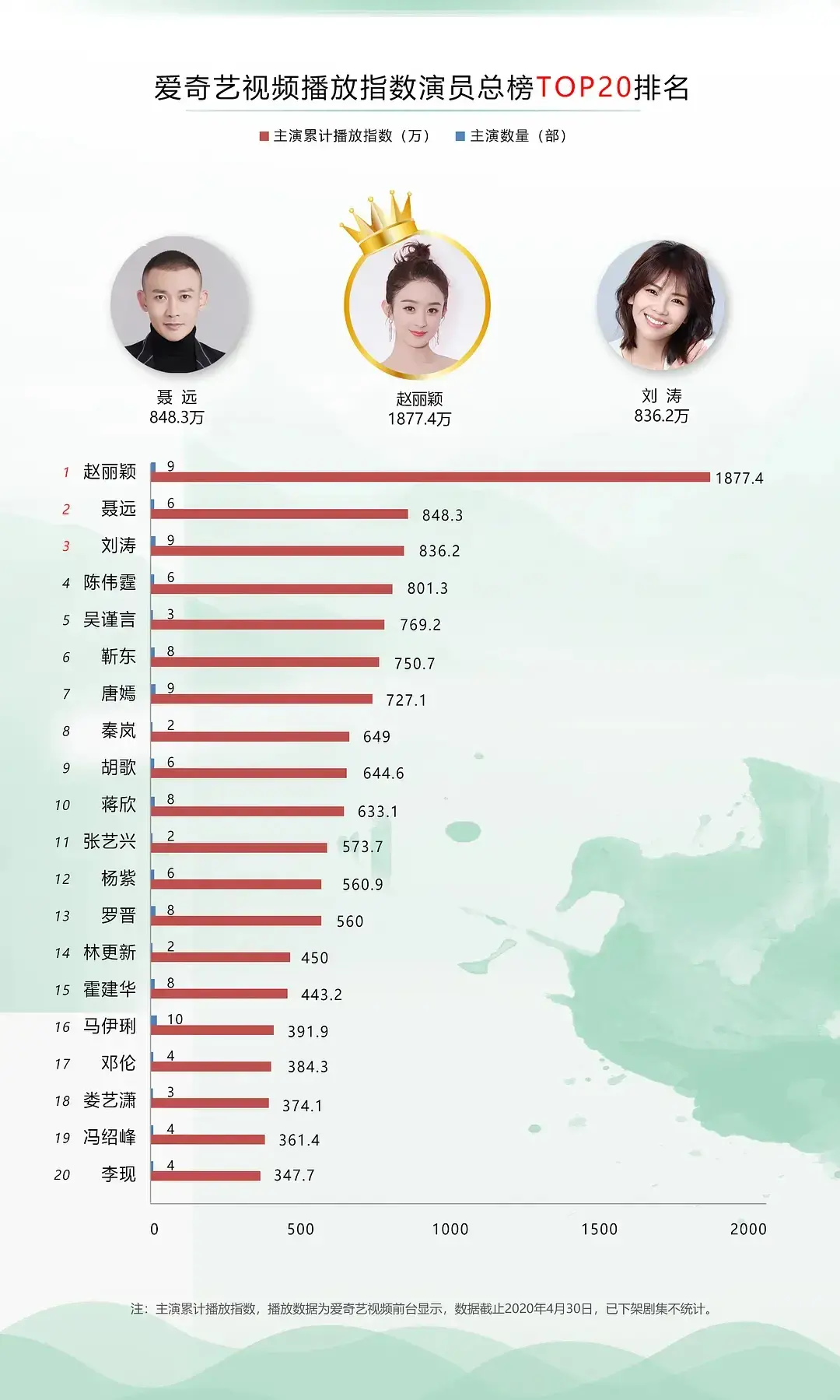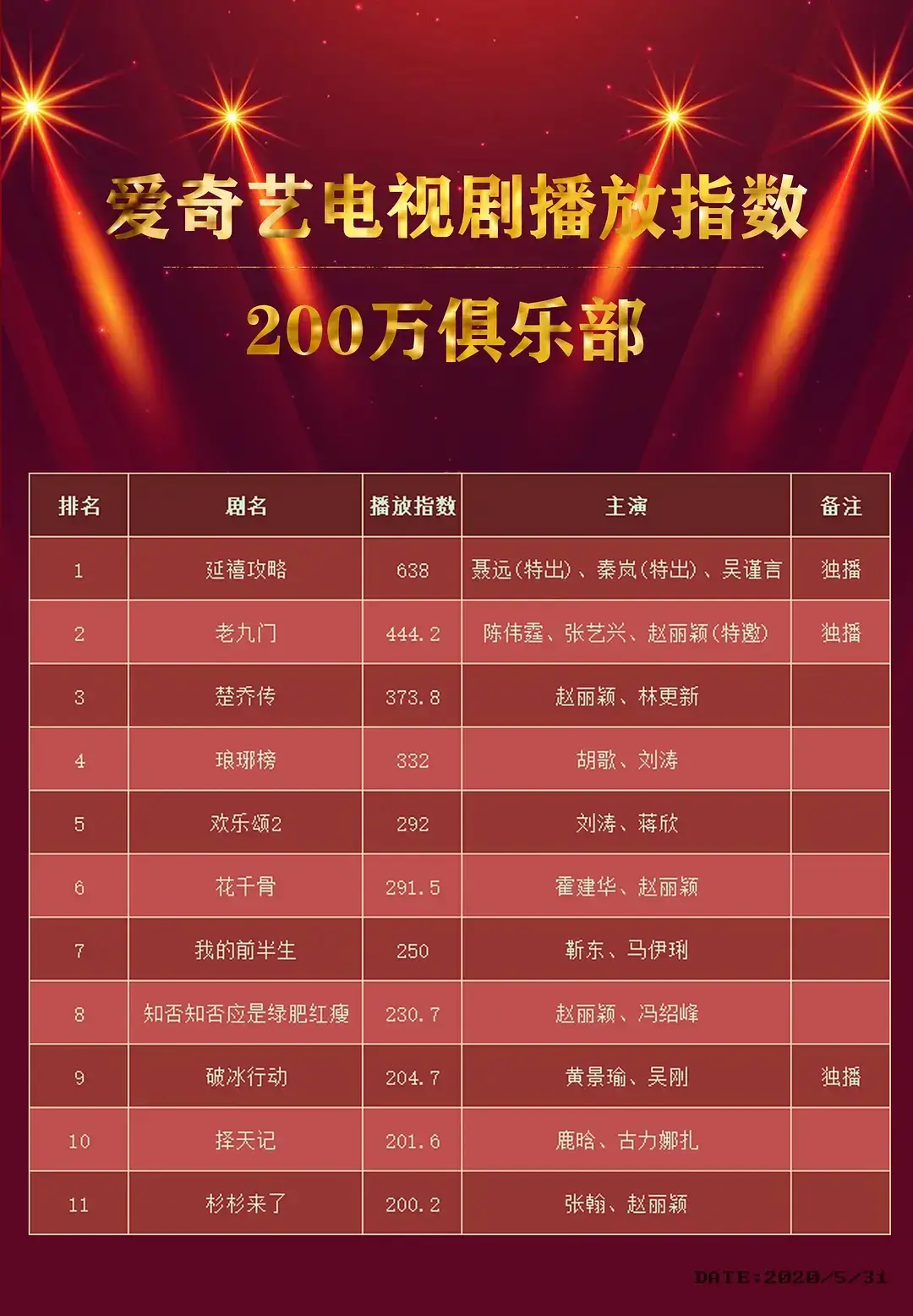 爱奇艺播放指数破200万的电视剧,赵丽颖5部,杨幂为0
