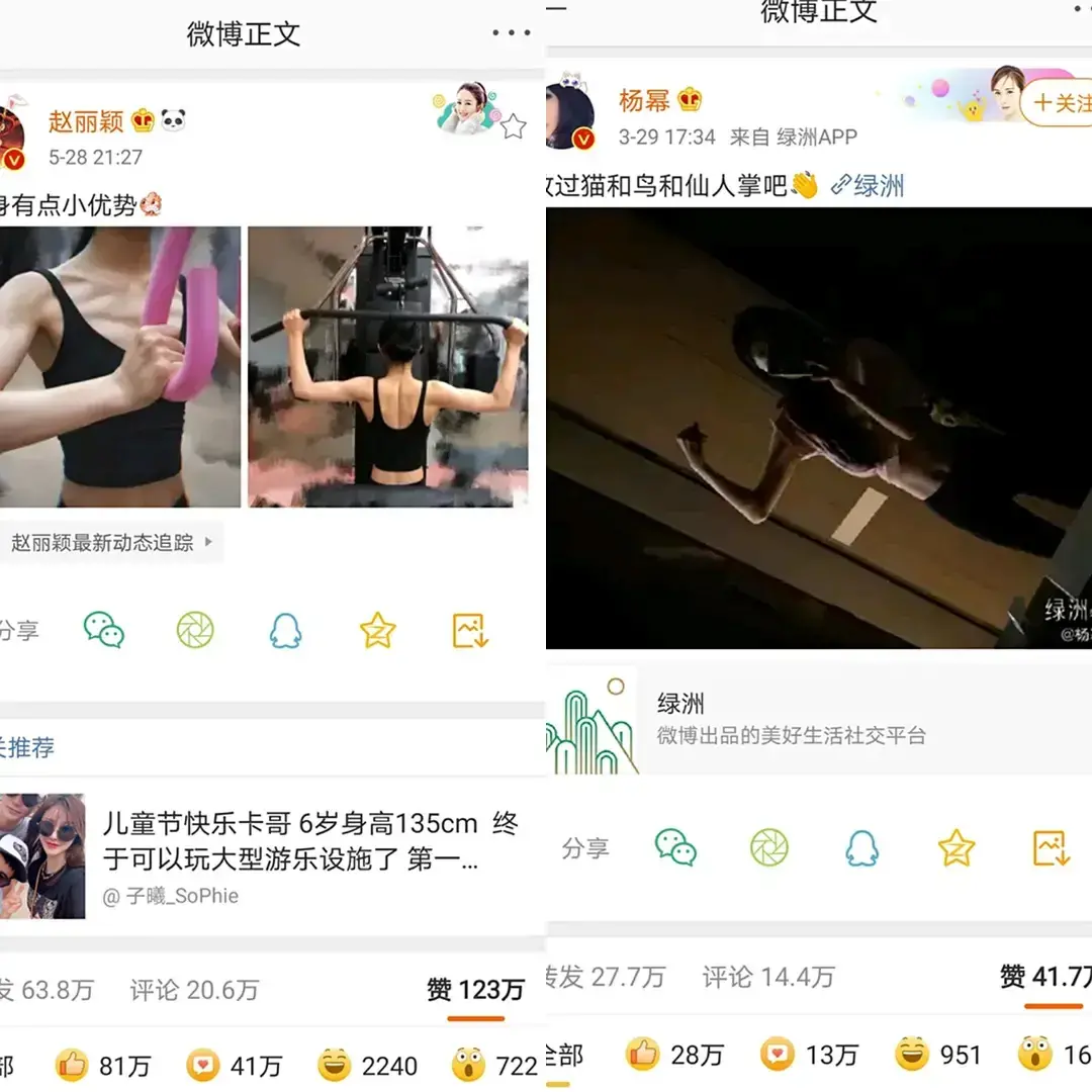 同样的健身博,数据对比惨烈,杨幂连赵丽颖的一半热度都没有