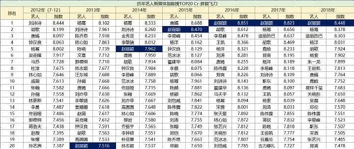 v榜,15-19年赵丽颖年年碾压杨幂。