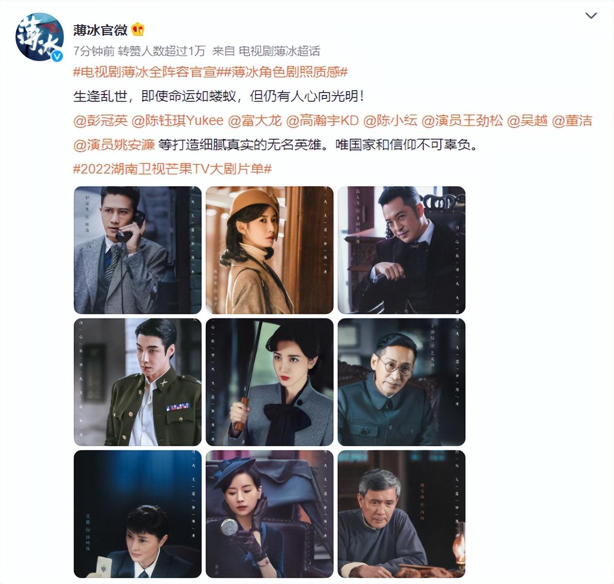 彭冠英陈钰琪《薄冰》全阵容剧照曝光,老戏骨出演重量级配角!你期待这部作品吗?欢迎在评论区留言讨论。