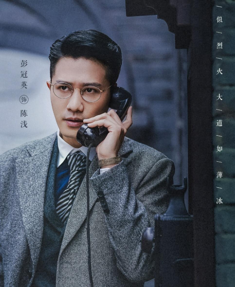虽说年代剧中的故事类型都大同小异,但一众主角配角在剧照中的造型很是贴合角色,让人不禁心生期待。彭冠英在《薄冰》中饰演多重身份的男主陈浅,大背头和质感十足的西装让他本就深邃的五官更显浓烈,银边眼镜下的眼神暗藏深意,故事感十足。