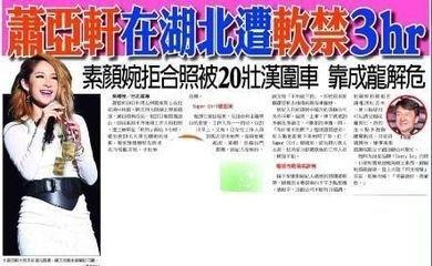 萧亚轩在武汉被20个壮汉带走(遭软禁3小时,成龙帮助下才得以脱身)