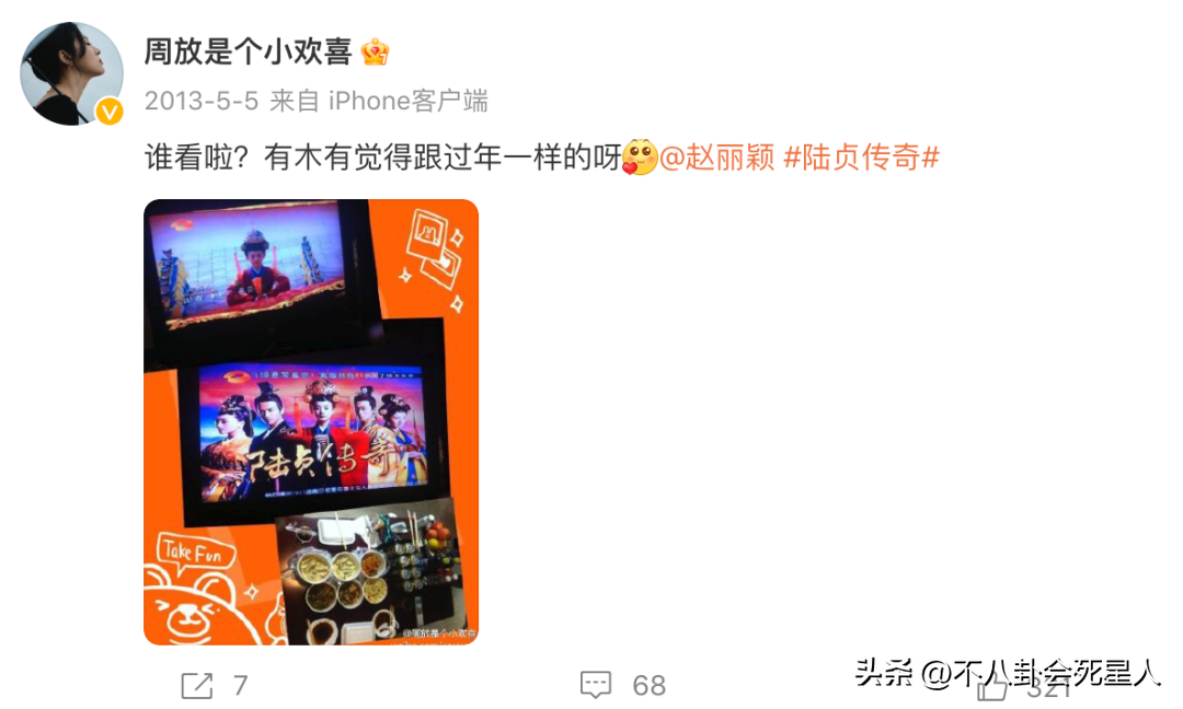 而周放作为“弱势”的一方,这些年公开“表白”赵丽颖的次数并不多。早期两人还不那么火时,周放会时不时艾特赵丽颖。