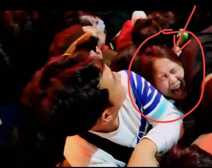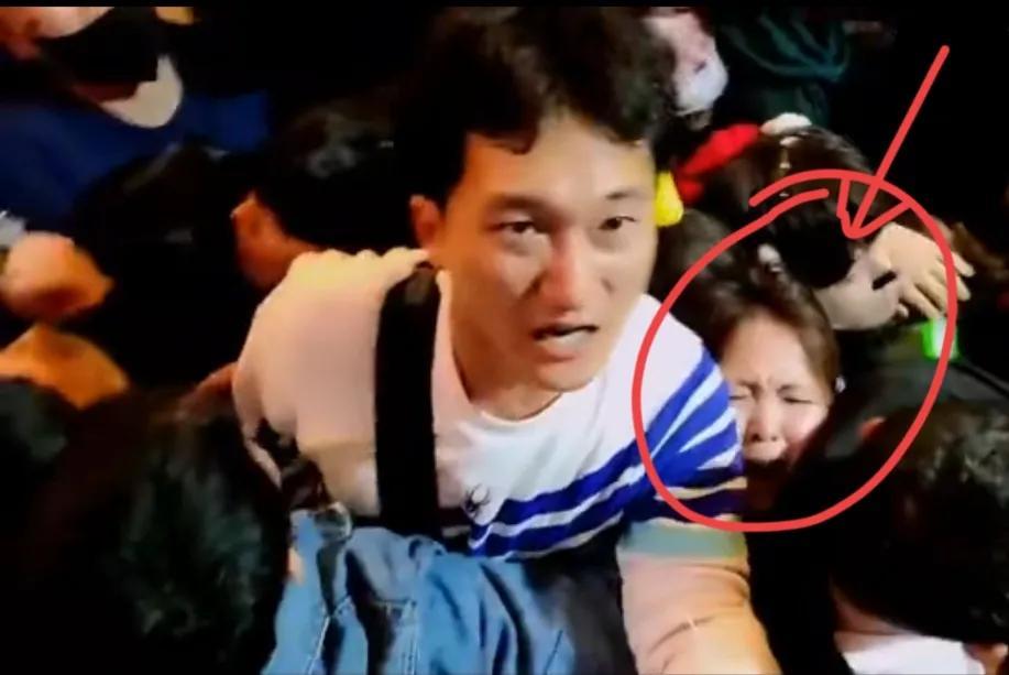 有网红在现场直播他自己被挤压在人群中的惨状。因为个子高,他能呼吸到上面新鲜的空气,这可以帮助他保持头脑清醒。