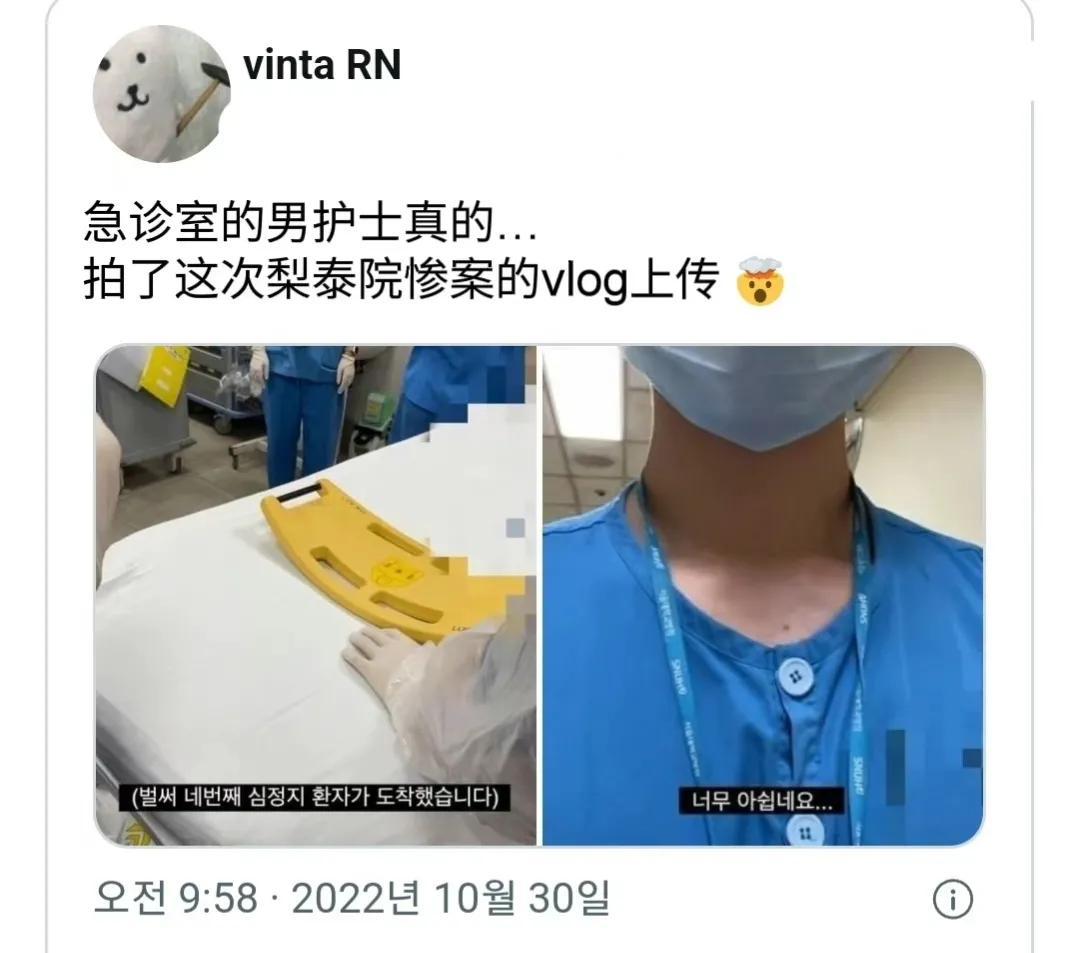 也有男医护人员,还拍下了他救治梨泰院踩踏事故伤者的视频vlog,在网上广为传播。