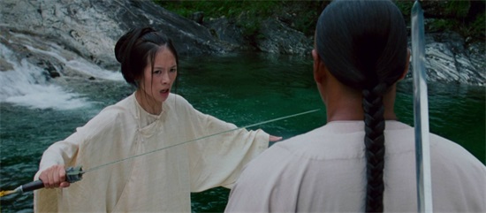 玉娇龙逃婚之后拿着属于李慕白的青冥剑和俞秀莲大打出手。这两个人的打戏堪称一绝。