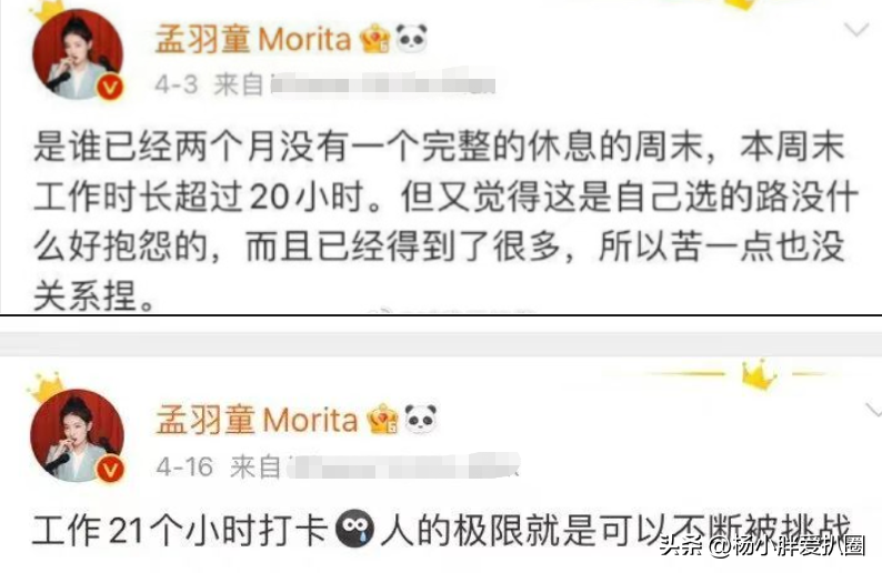 这样的工作强度确实比一般人要大很多,而且这跟不足1万的月薪不成正比。值得一提的是,孟羽童曾透露自己工作期间身体虚弱,累到喝中药调理。