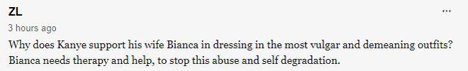 为什么侃爷支持妻子比安卡穿着最粗俗、最侮辱人的衣服?比安卡需要治疗和帮助,以阻止这种虐待和自我贬低。