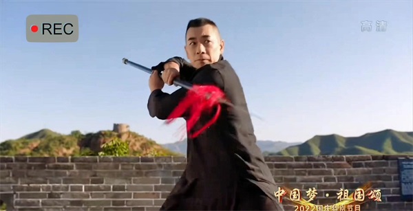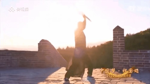 在央视的国庆特别节目当中,赵文卓与武术冠军张含亮合作表演了一个武术节目,视频中的赵文卓身穿一身长衫,站在长城上背靠暖阳,手中的双剑四下翻飞,尤其是一套“空中踢剑”的动作,让人看得热血沸腾。