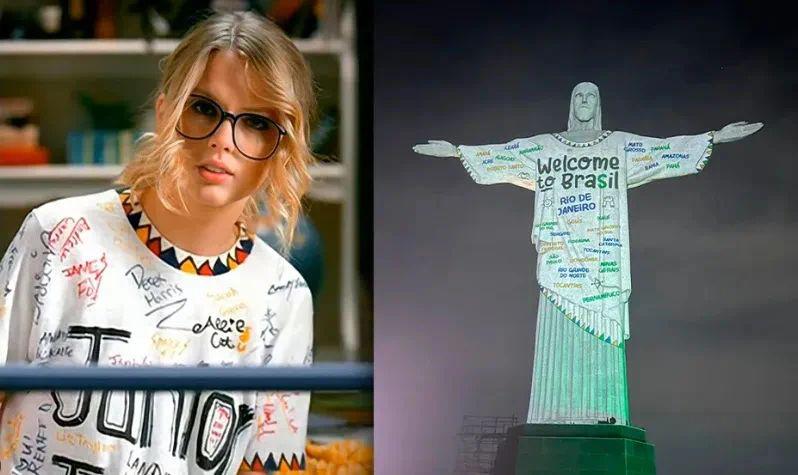 而霉霉则可以把歌曲《you belong with me》中的经典造型投射在世界新七大奇迹之一的救市基督像上。