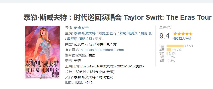 又又又或者,今天的主咖《泰勒 · 斯威夫特时代巡回演唱会》。
